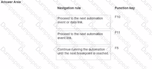 When you debug an automation, you have three function keys to use for navigating the breakpoints. Drag each navigation rule on the left to the box next to the correct function key on the right.