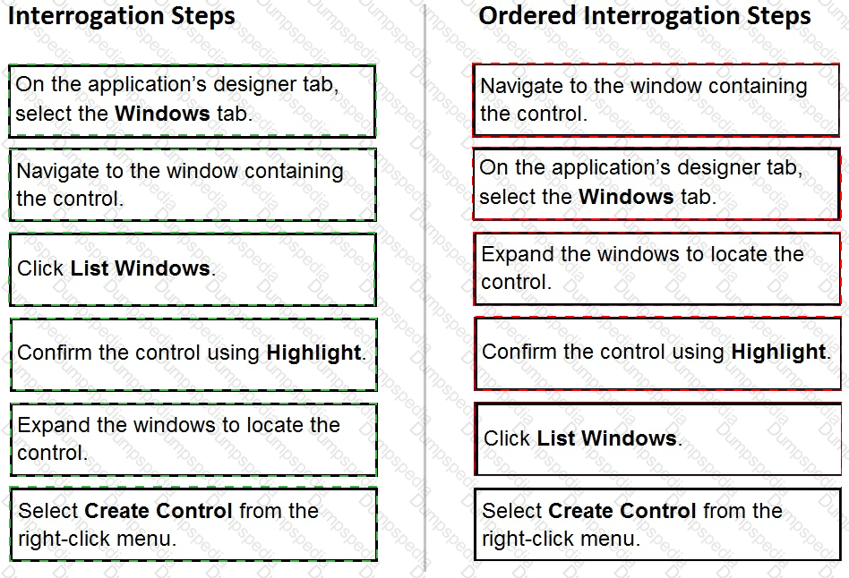 When interrogating a Windows control, the drag and drop Default interrogation method does not work. You decide to use the Create Control option to interrogate the control.