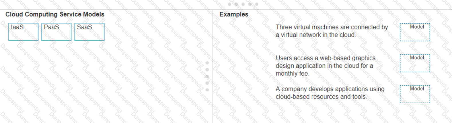 Move each cloud computing service model from the list on the left to the correct example on the right