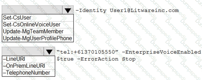 You need to enable a Direct Routing phone number for user1@contoso.com.