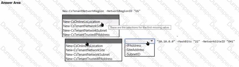 How should you complete the PowerShell script? To answer, select the appropriate options in the answer area.