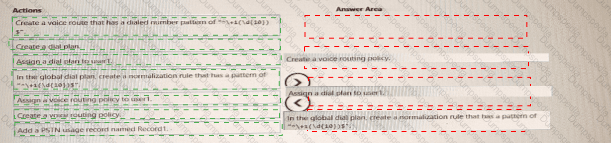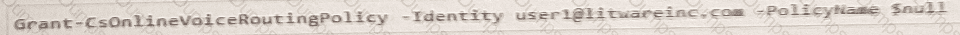 You need to configure voice routing for Direct Routing. The solution must only allow calling within the United States and Canada for a user named user1 ©contosoxom.