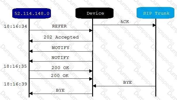 When you attempt to transfer the call, the transfer fails. A portion of the SIP ladder is shown in the exhibit. (Click the Exhibit tab.)