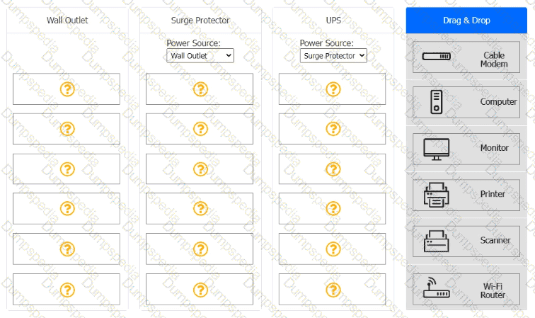 Based on the customer's requirements, connect the customer's devices to the proper outlets. Select the power source for the Surge Protector and UPS. This may require reselecting dropdowns or removing tokens.