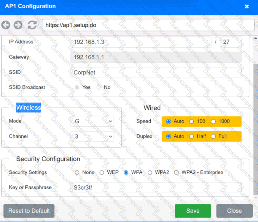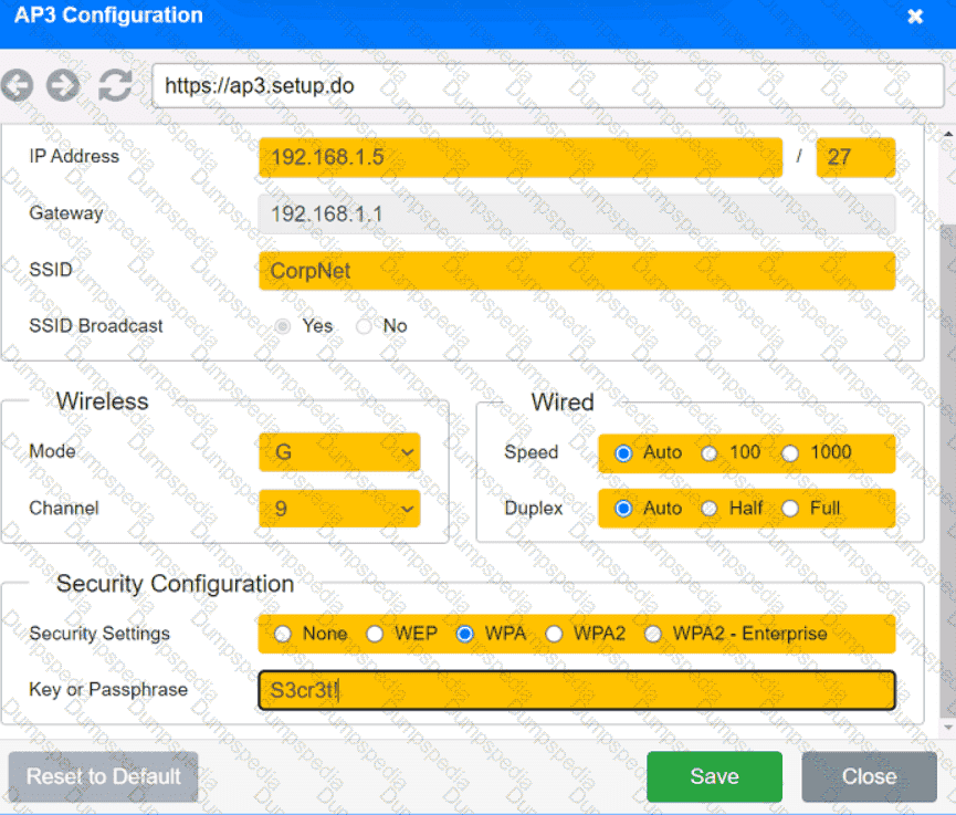 The SSIDs need to be configured as CorpNet with a key of S3cr3t!