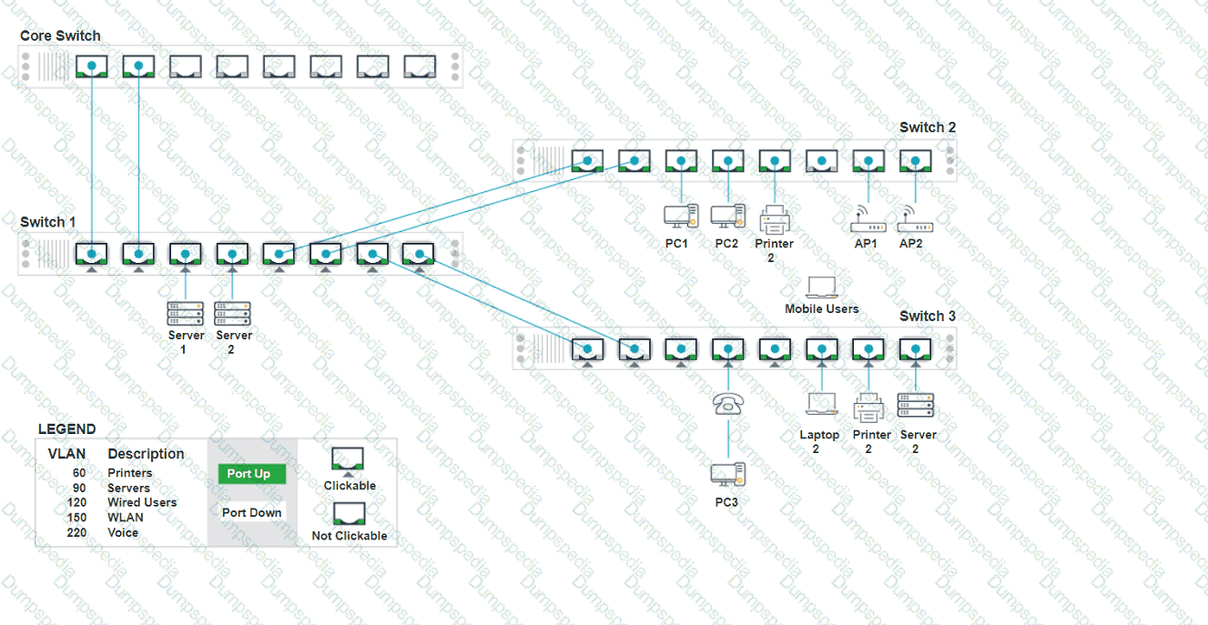 Click on the appropriate port(s) on Switch 1 and Switch 3 to verify or reconfigure the