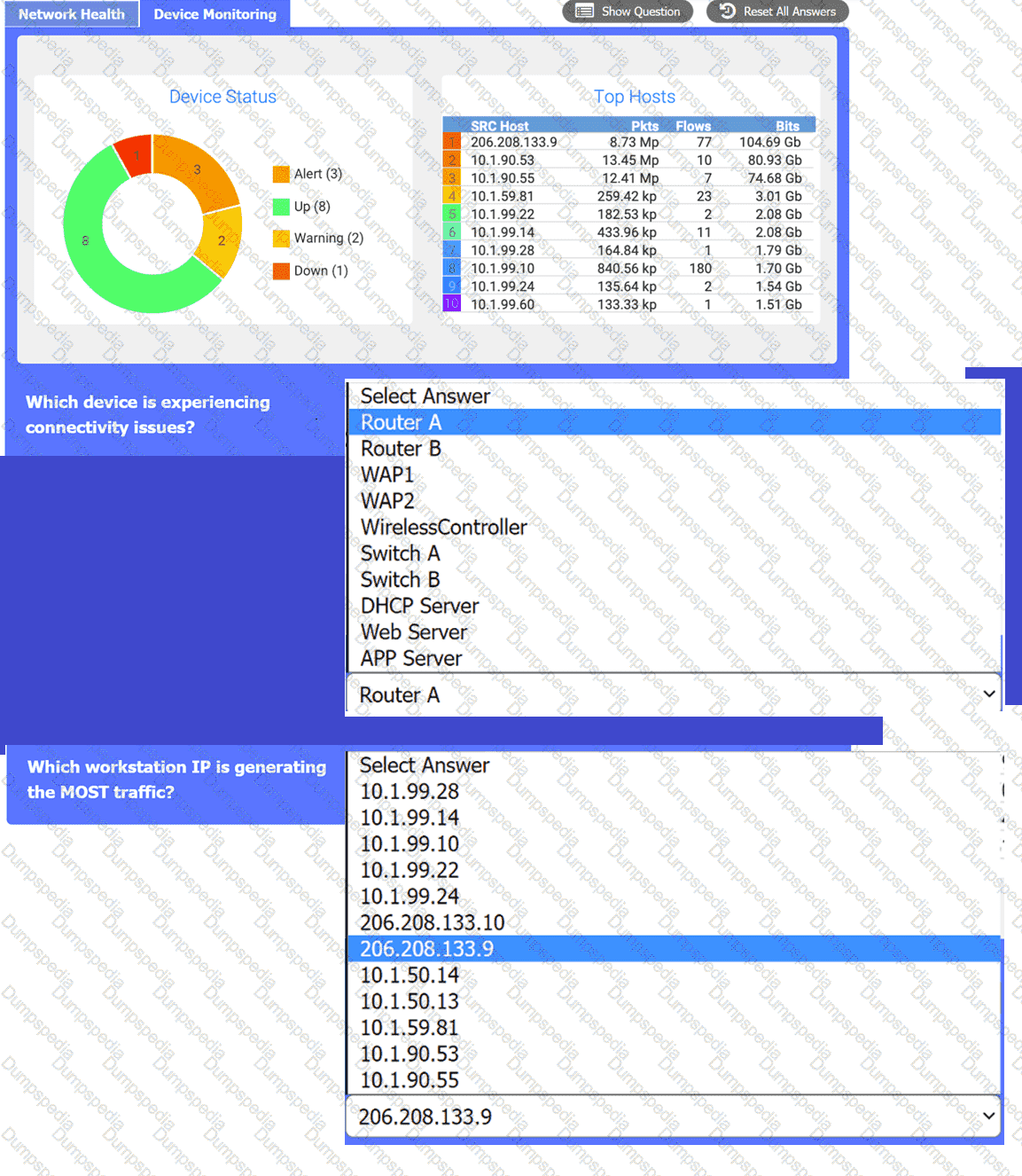 use the drop-down menus to answer the associated questions. If at any time you would like to bring back the initial state of the simulation, please click the Reset All button.