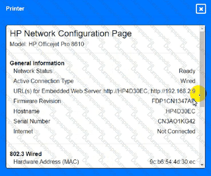 A user reports having intermittent connectivity issues to the company network. The network configuration for the user reveals the following: