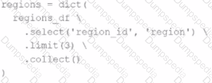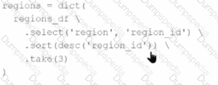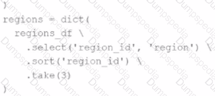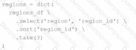 The resulting Python dictionary must contain a mapping ofregion -> region_idfor the smallest 3region_idvalues.