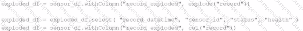 Which block of Spark code can be used to achieve this requirement?