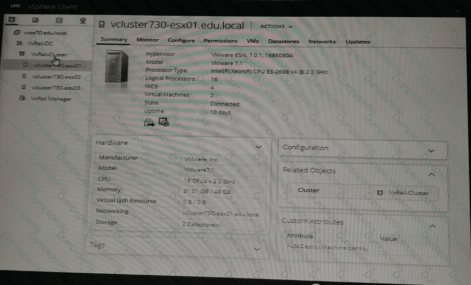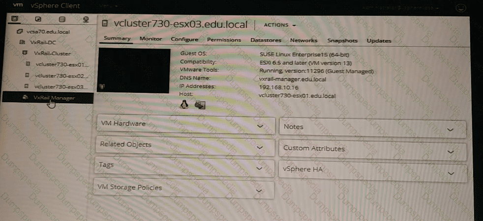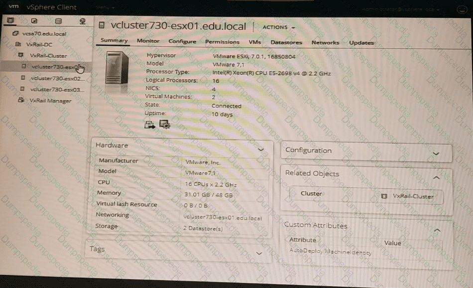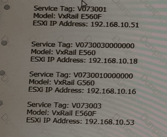 A VxRail Cluster has just been deployed. Use the VxRail simulator to determine the Service Tag, Model, and ESXJ IP Address of the first node - vcluster730.esx01.edu.local.