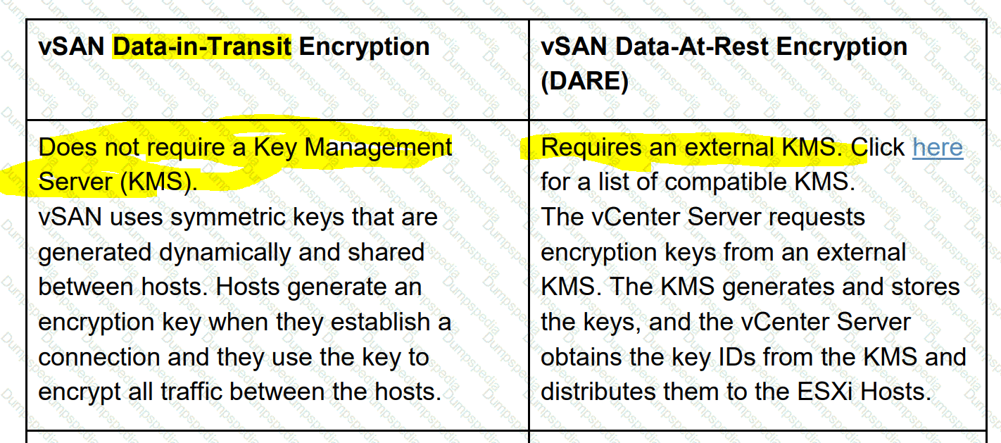 What is a difference between vSAN Data-In-Transit Encryption and vSAN Data-At-Rest-Encryption?