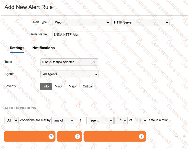 A network engineer is tasked with configuring an alert that will trigger if the HTTP server responds with a server error. What alert conditions should be configured to meet the specified requirements?