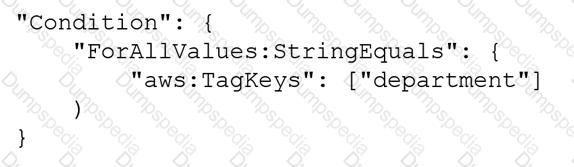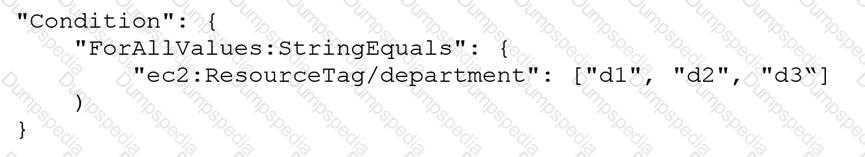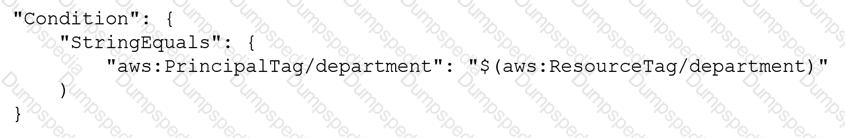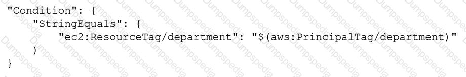 All existing Amazon EC2 instances have a department tag that corresponds to three company departments (d1, d2, d3). A DevOps engineer must create policies based on the matching attributes. The policies must minimize administrative effort and must grant each Azure AD user access to only the EC2 instances that are tagged with the user’s respective department name.