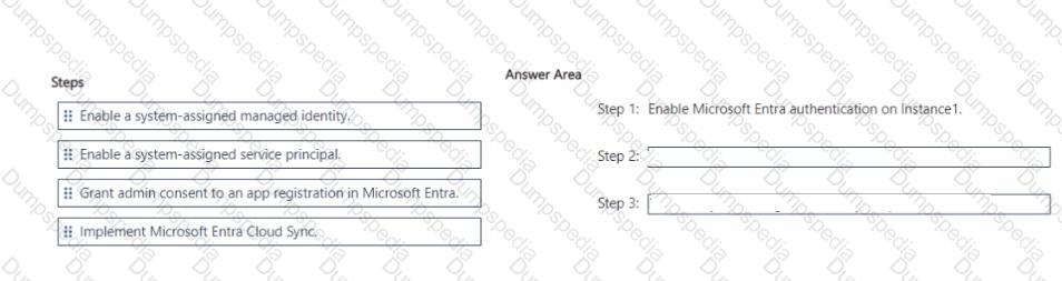 You need to recommend an authentication solution for App1 access to DB1 and DB2 after their migration to Instance1. The solution must meet the availability requirements.