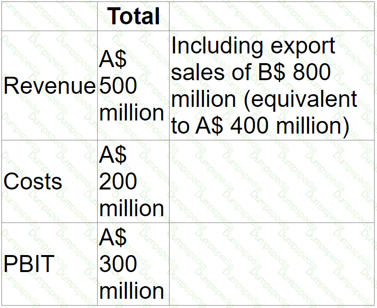 The company reports in A$ but has significant export sales priced in B$.