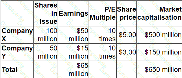 The following estimations of the new combined value of Company Z have been prepared for each acquisition before deduction of the cash consideration: