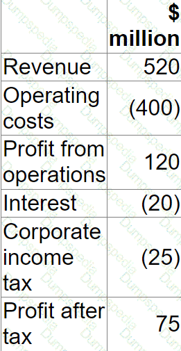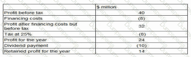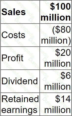 The company has 4 million shares in issue on which the earnings yield is currently 10%. It also has a $2 million bond in issue with a fixed interest rate of 5%.