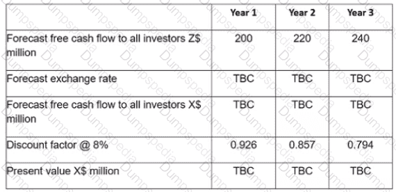 A UK based company is considering investing GBP1 ,000,000 in a project it the USA. It is anticipated that the project will yield net cash inflows of USD580.000 each year for the next three years. These surplus cash flows will be remitted to the UK at the end of each year.