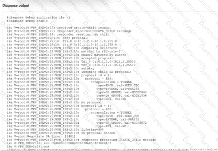 The debug command for IKE was enabled and, in the exhibit, you can review the partial output of the debug IKE while attempting to bring the tunnel up.