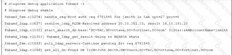 Refer to the exhibit, which shows a truncated output of a real-time LDAP debug.