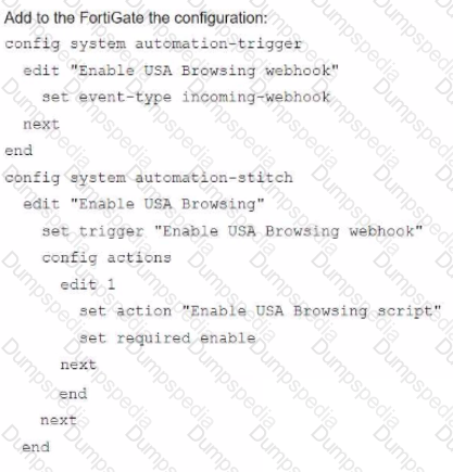 A customer in Costa Rica has a FortiGate with SD-WAN configured to use a VPN connection to the United States to browse the internet using a public IP from that country. They would like to enable the SD-WAN rule using a webhook.