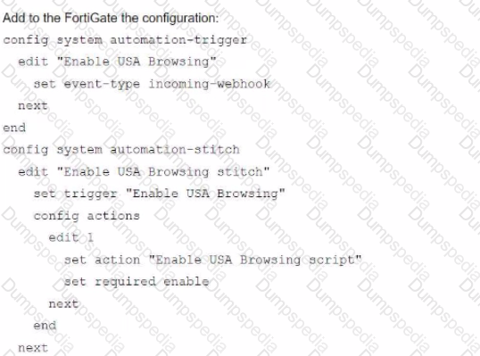 Refer to the exhibit, which shows a FortiGate configuration snippet.