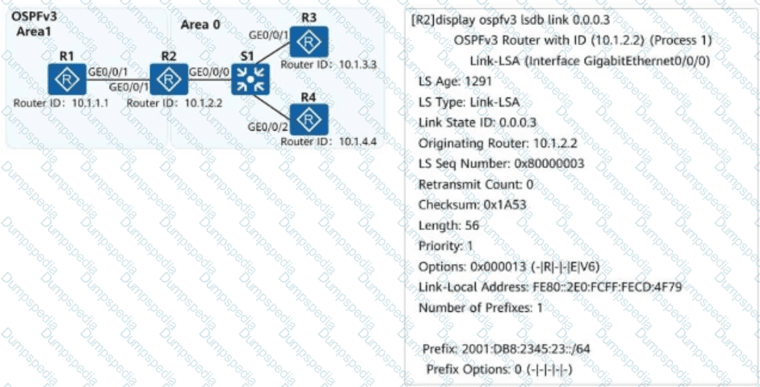 On the campus network shown, IPv6 is deployed for service tests. Four routers are deployed on the network, and OSPFv3 is used for IPv6 network connectivity. An engineer checks the LSDB of R2 and obtains a Link-LSA. Which of the following statements about the LSA are correct?