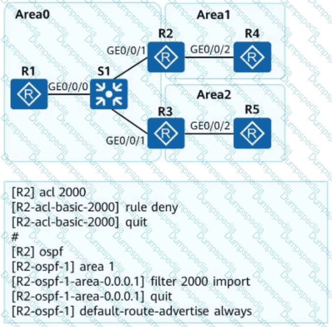 As shown in the following figure, OSPF is deployed on a campus network to implement network interconnection, and Area 1 is deployed as an NSSA. To enable R1 to access R4’s loopback interface address, an engineer imports a direct route to R4’s OSPF process. Which of the following statements about this scenario are correct?