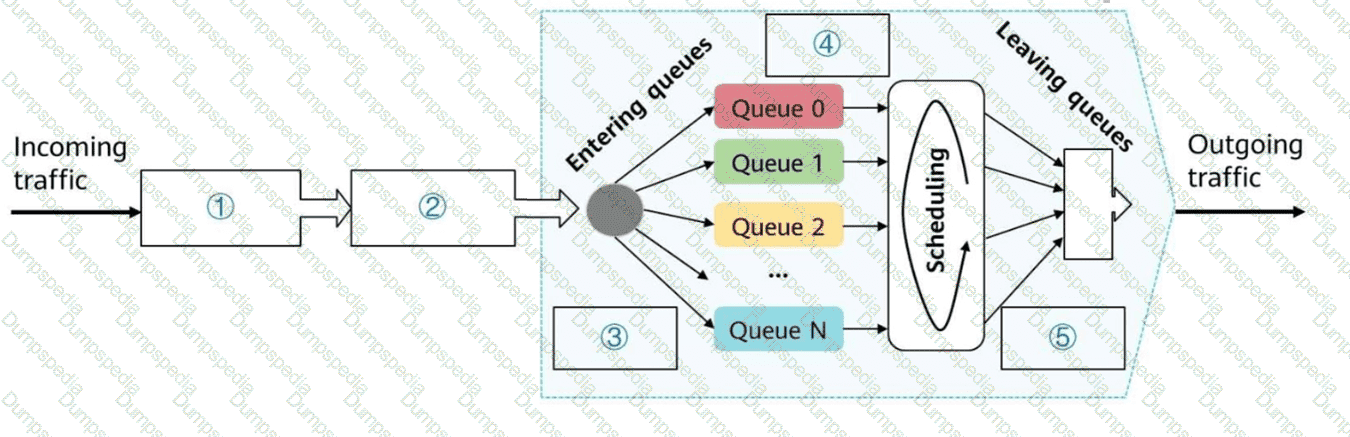 Complete the basic processing procedure for DiffServ model-based QoS shown in the figure