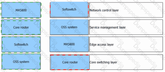 According to the NGN architecture, drag the following devices to the corresponding layers. (Score only when all the answers are correct.)