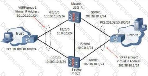 The enterprise network is as shown in the figure. On the USG_A and USG_B, hot standby is configured, and USG_A is the master device. The administrator wants to configure SSL VPN on the firewall so that branch employees can access the headquarters through SSL VPN. Which virtual gateway address should the SSL VPN be?