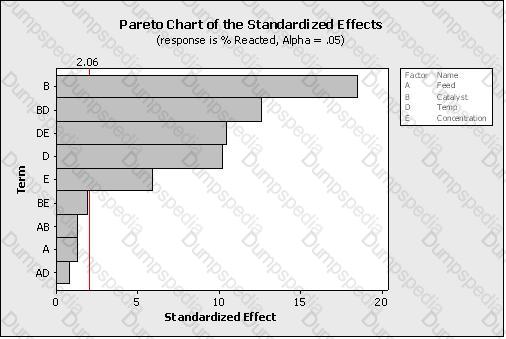 Which statement(s) are correct about the Pareto Chart shown here for the DOE analysis? (Note: There are 2 correct answers).