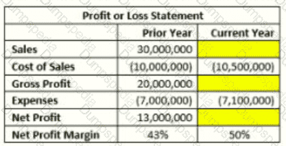 The manager of the sales department wants to Increase the organization's net profit margin by 7% (from 43% in the prior year to 50% in the current year). Given the information provided in the table below, what would be the targeted sales amount for the current year?