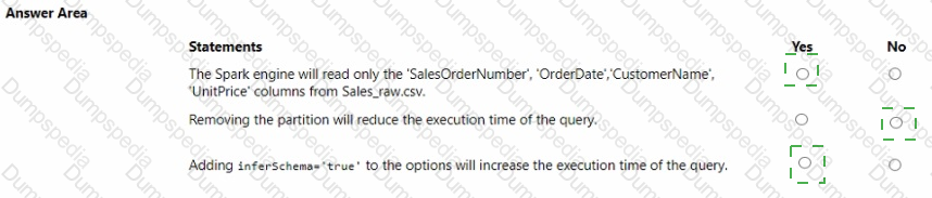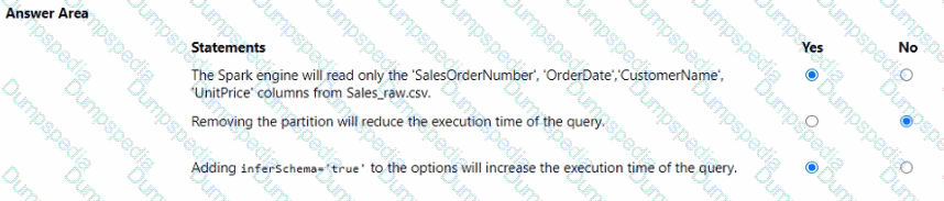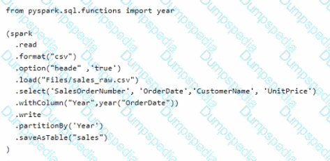 You plan to read a CSV file named Sales.raw.csv in a lakehouse, select columns, and save the data as a Delta table to the managed area of the lakehouse. Sales_raw.csv contains 12 columns.