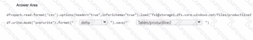 You need to migrate the Research division data for Productline2. The solution must meet the data preparation requirements. How should you complete the code? To answer, select the appropriate options in the answer area
