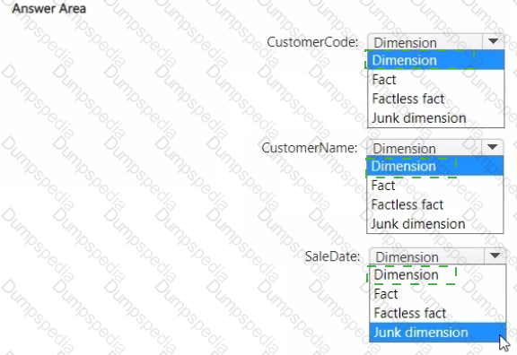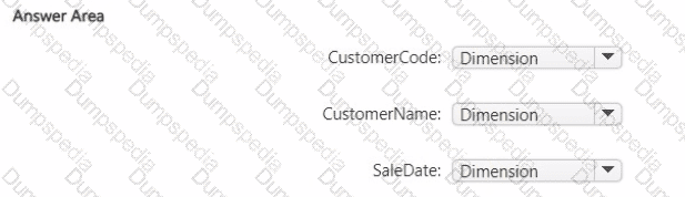 Which type of target table should you specify for the CustomerName, CustomerCode, and SaleDate fields? To answer, select the appropriate options in the answer area.