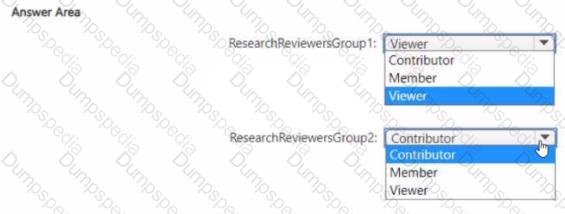 Which workspace rote assignments should you recommend for ResearchReviewersGroupl and ResearchReviewersGroupZ? To answer, select the appropriate options in the answer area.