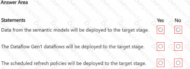 You create a deployment pipeline named Pipeline1 to move items from Workspace1_DEV to a new workspace named Workspace1_TEST.