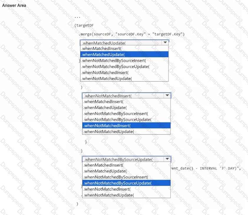 The data source contains a table named Status.Source that has the same columns as Status_Target. Status.Source is used to populate Status_Target. In a notebook name Notebook!, you load Status_Source to a DataFrame named sourceDF and Status_Target to a DataFrame named targetDF. You need to implement an incremental loading pattern by using Notebook-!. The solution must meet the following requirements: