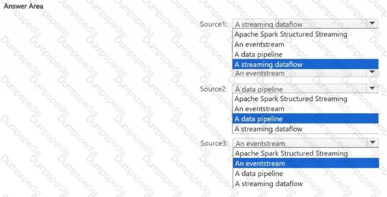 You need to recommend a Fabric streaming solution that will use the sources shown in the following table.