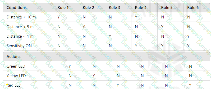 The following decision table describes the rules associated with the functioning of this proximity warning system: