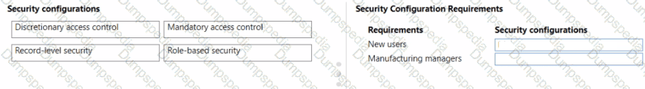 You need to identify the security configuration required for new users and for the manufacturing managers.