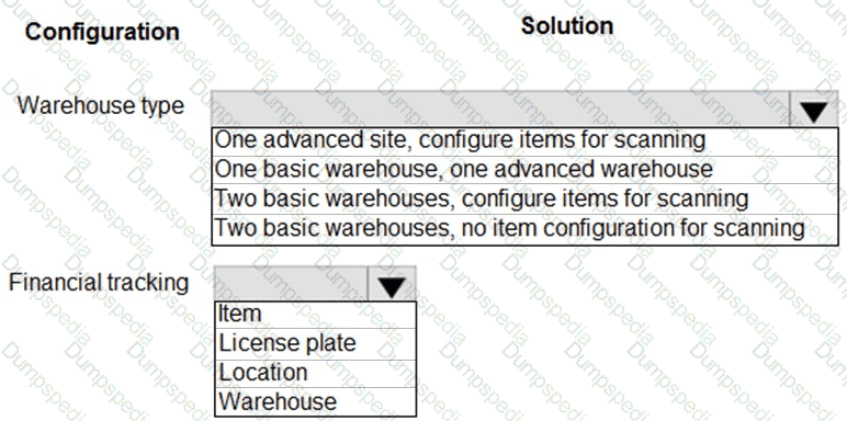 You need to recommend a site and warehouse configuration.