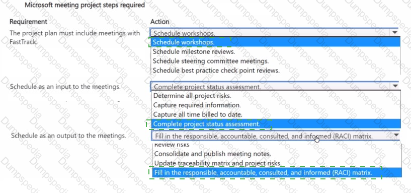 A company is implementing Dynamics 365 Supply Chain Management. The company is in the FastTrack program and has been assigned a FastTrack solution architect.