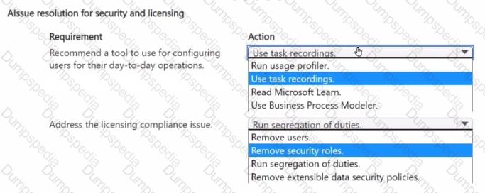 You need to recommend which type of Dynamics 365 licenses are needed.