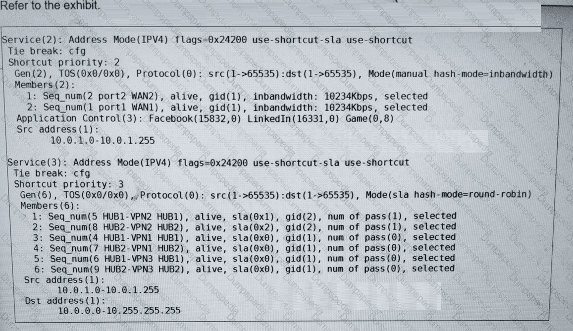 (Refer to the exhibit. The administrator configured two SD-WAN rules to load balance the traffic.