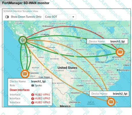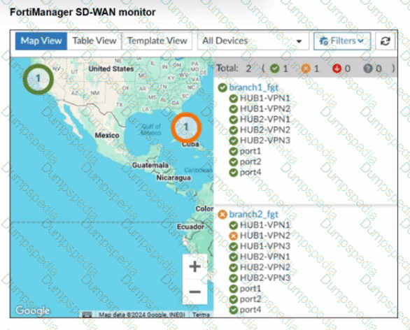 You applied the changes to the devices and want to use the FortiManager monitors menu to get a graphical view that shows the status of each SD-WAN member.
