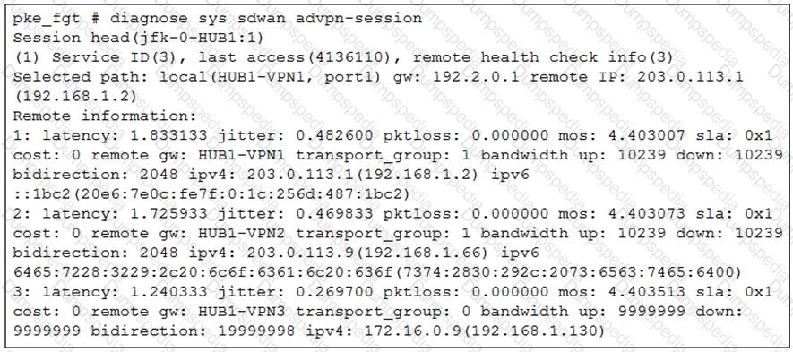 You configured an SD-WAN rule with the best quality strategy and selected the predefined health check, Default_FortiGuard, to check the link performances against FortiGuard servers.