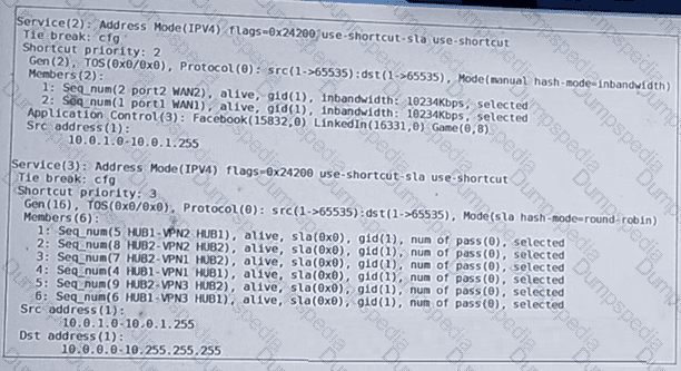 The administrator configured two SD-WAN rules to load balance traffic.